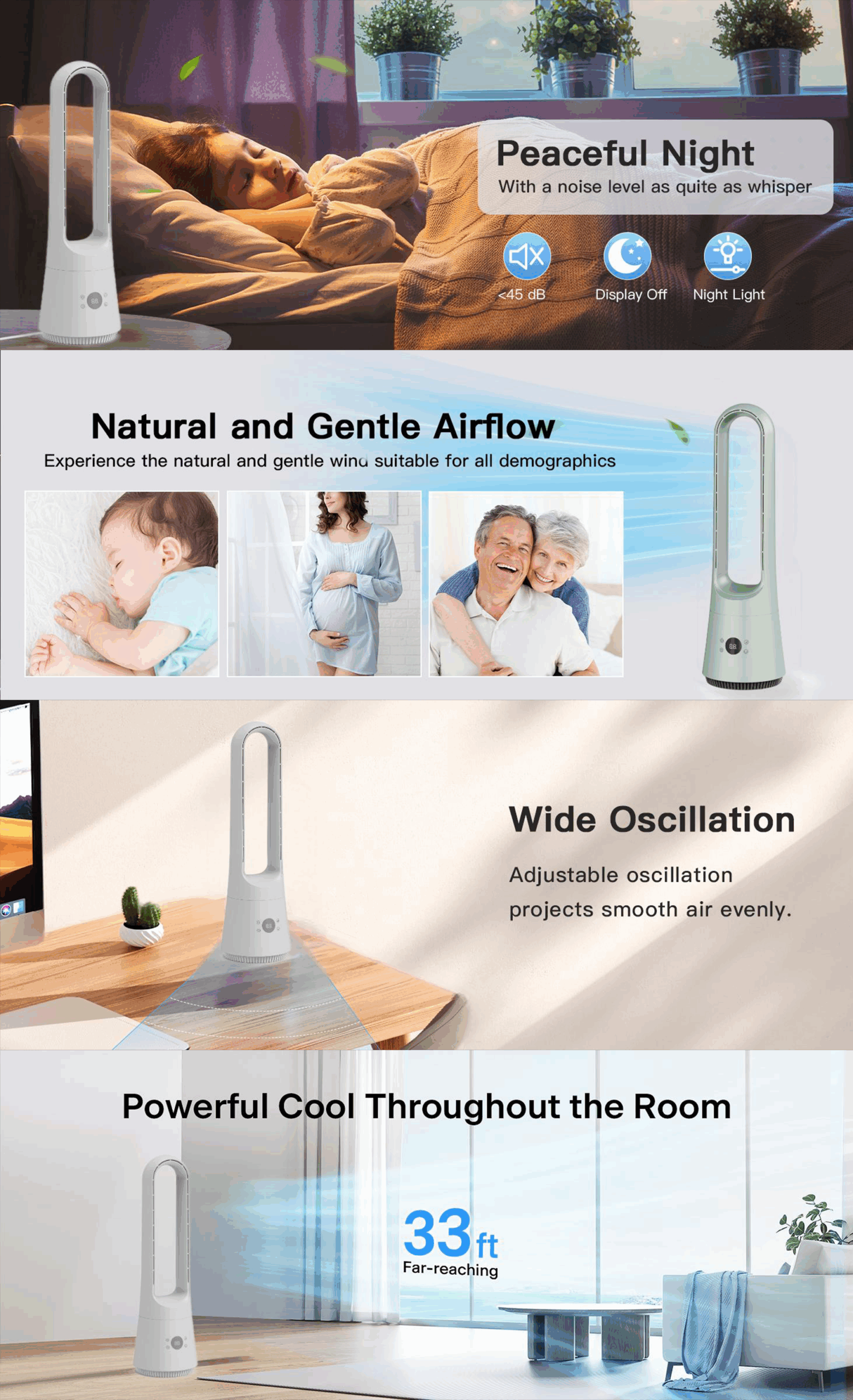 Flexible Cooling Modes:Offers 8 speed levels, cooling and a quiet Sleep mode for restful nights。