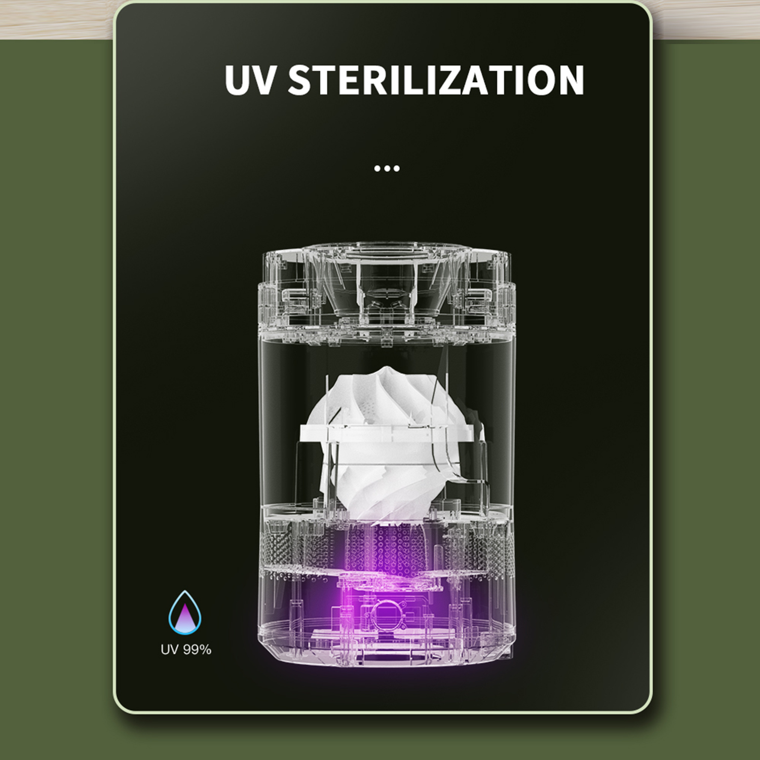 UV Sterilization: Features UV light to kill germs in the water or mist.