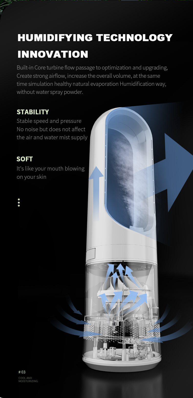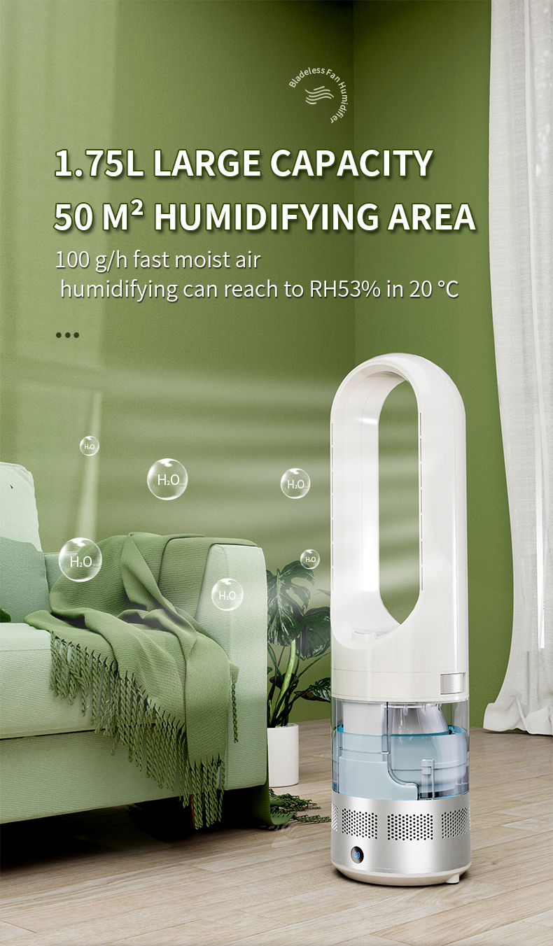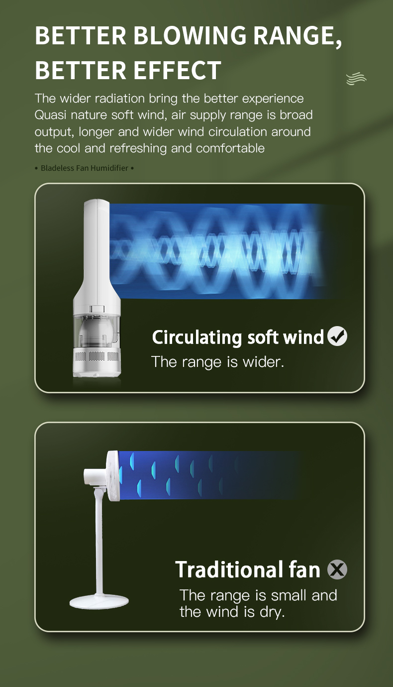 2-in-1 Functionality: Combines a Bladeless Fan and a Humidifier.